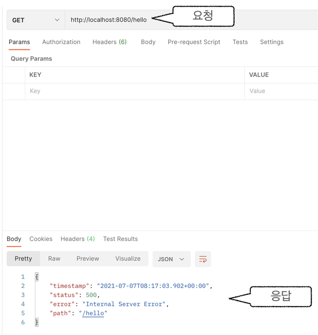참고 : 요청 응답 결과를 간편하게 보기 위해 POSTMAN 프로그램을 사용하였습니다.