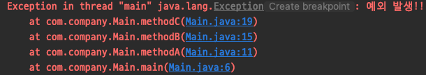 throw new ExceptionA("A 예외 발생!!");