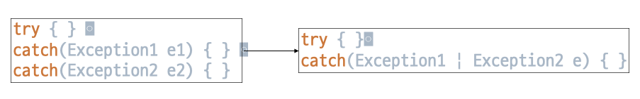 JDK1.7부터는 '|'를 사용하여 여러 catch 블록을 하나의 catch 블록으로 합칠 수 있는 '멀티 catch블록'이 추가되었다.