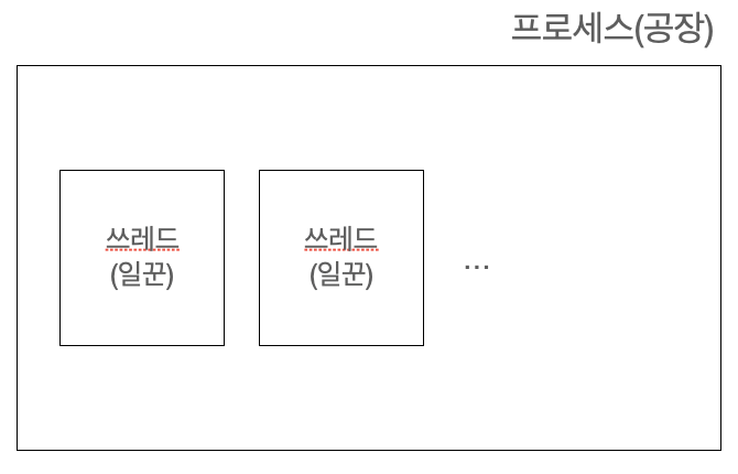 - 쓰레드: 프로세스의 자원을 이용해서 실제로 작업을 수행