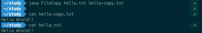 - FileInputStream(File file) : 파일의 이름이 아닌 File인스턴스로 파일 입력 스트림 생성한다.