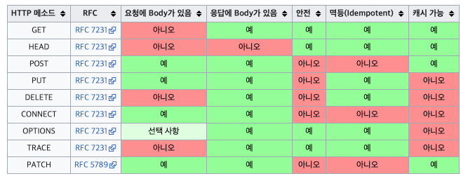 - HEAD : GET과 동일하지만, 상태 줄과 헤더만 반환.(본문을 포함하지 않는다)
