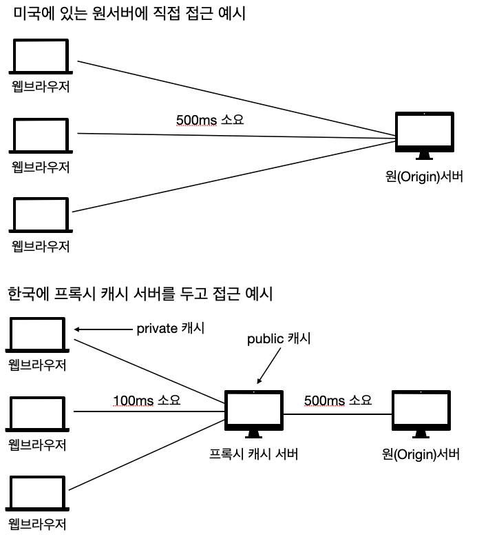 - public 캐시 : 중간에서 공용으로 사용하는 캐시 서버, 프록시 캐시 서버