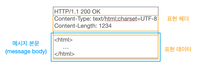 - 메시지 본문(message body) : 표현 데이터를 전달하는 데 사용, 페이로드(payload)라고도 한다.