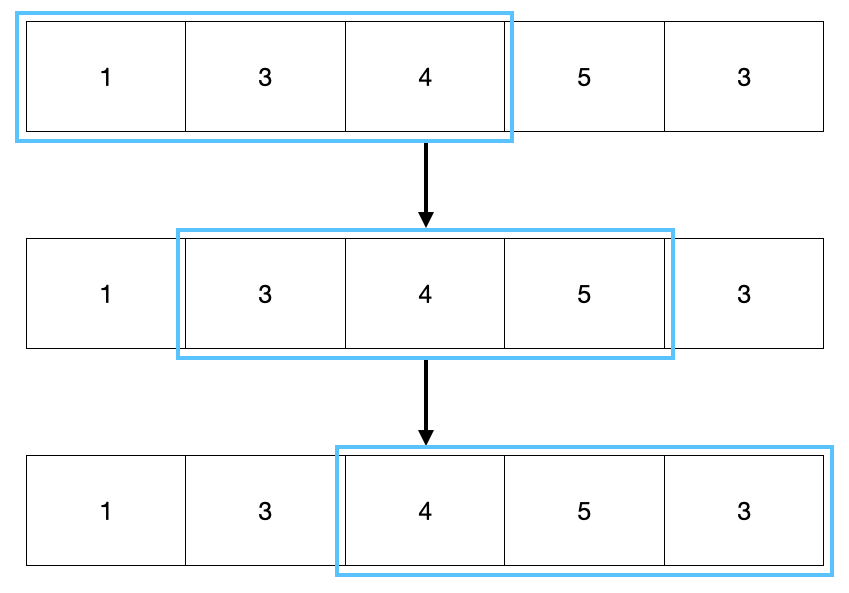 - 아래 그림처럼 먼저 0~k 날의 매출합을 구하고, 한칸씩 이동하면서 최댓값을 구한다.